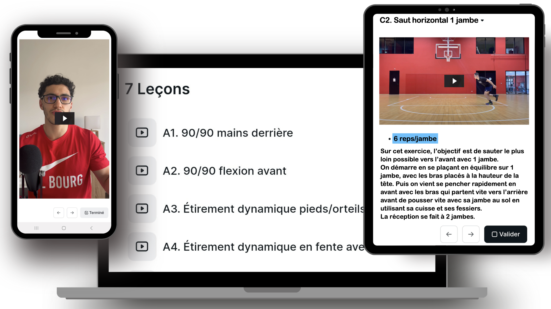 Chaque séance démarre par une partie étirement, mobilité et activation musculaire.
