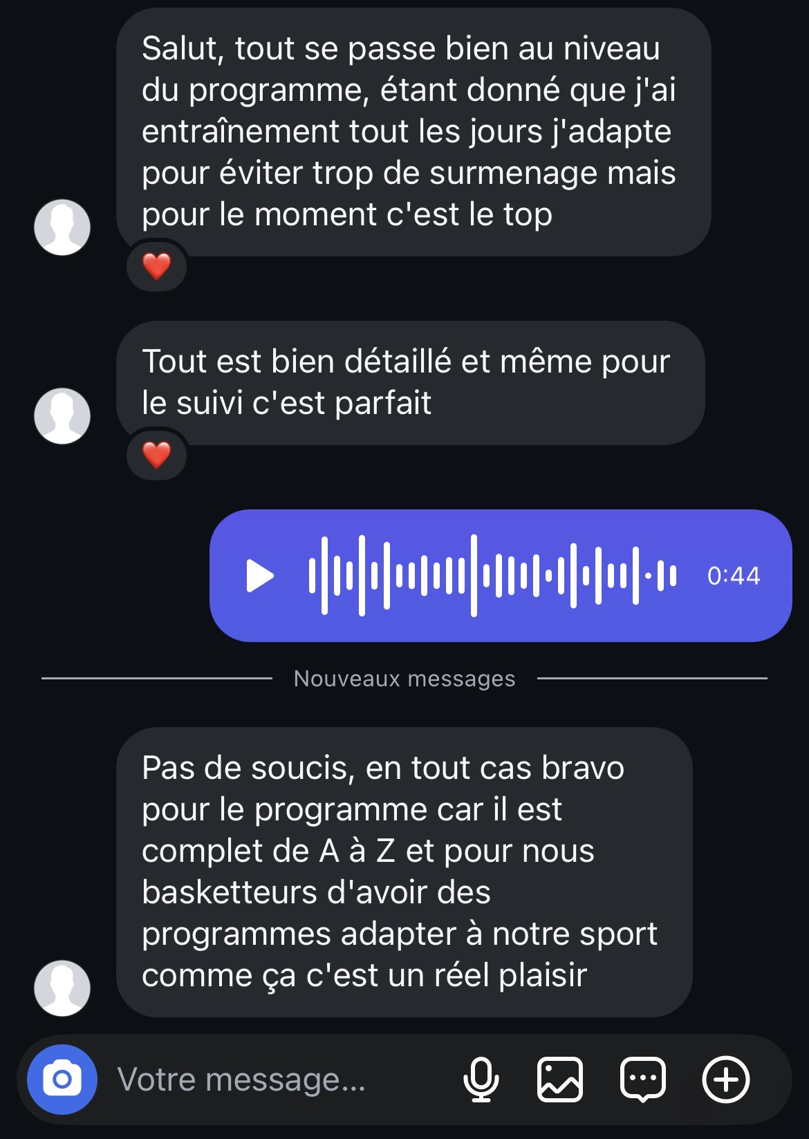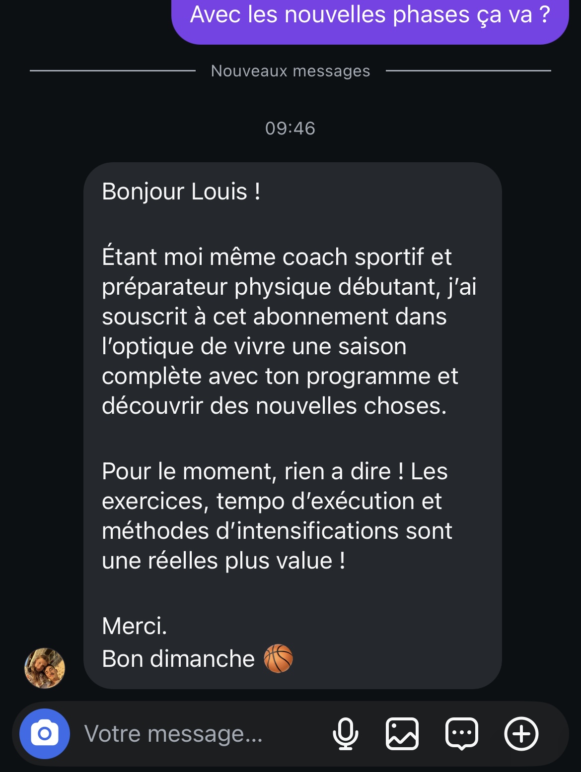 Un chat dédié pour que tu puisse suivre le programme en toute simplicité avec mes conseils.